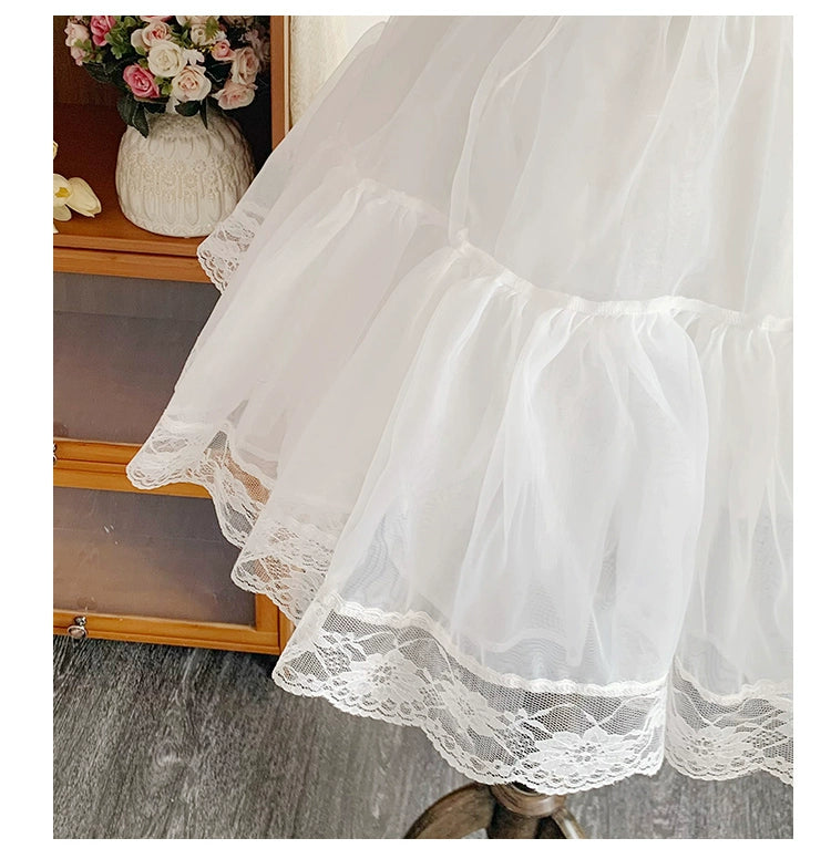 ふんわりとした自然なボリュームが出るパニエ。オーガンジー部分45cm+レース部分5cmの総丈50cm。
