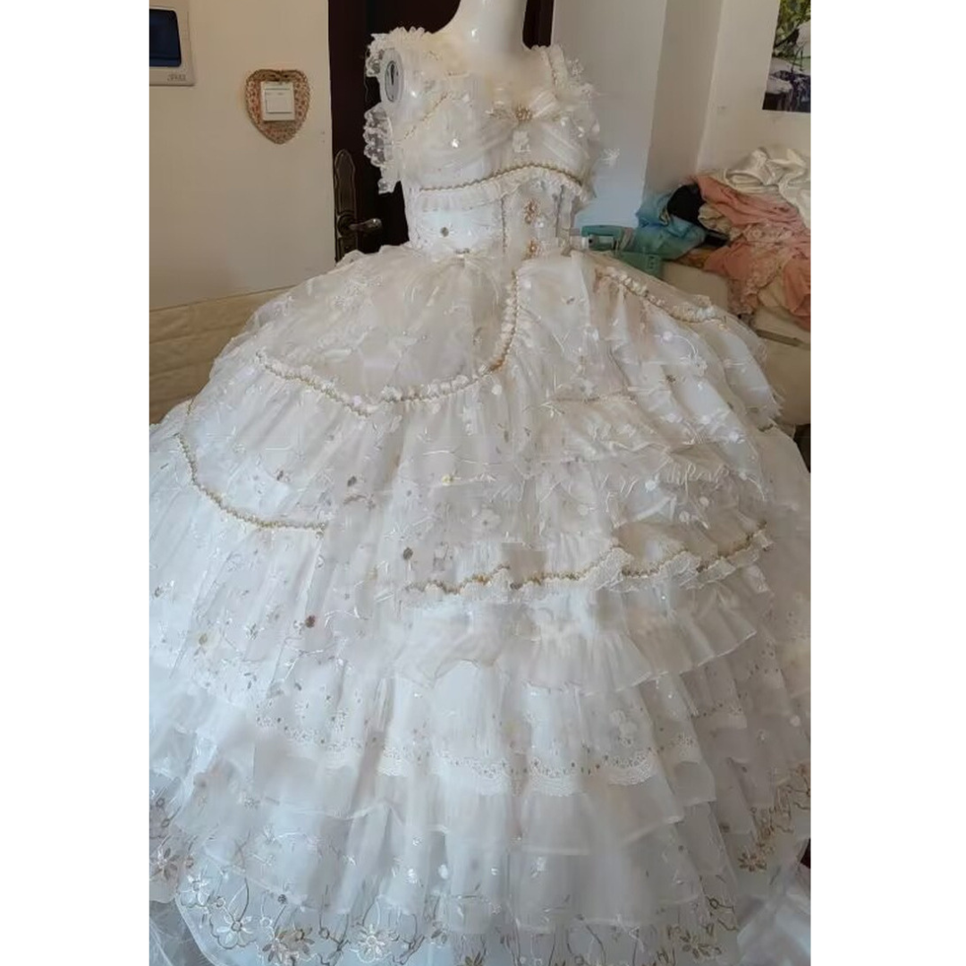 ホワイト × ゴールドの装飾がゴージャスなプリンセスドレス。