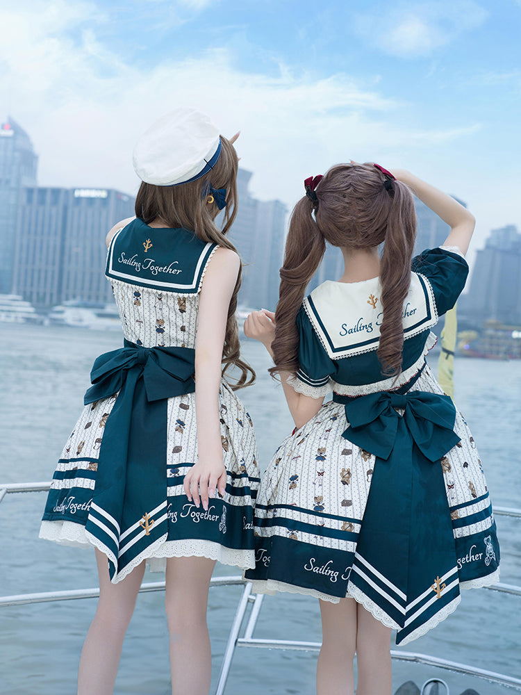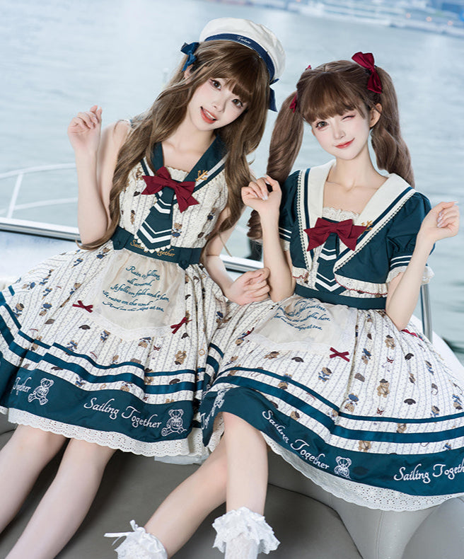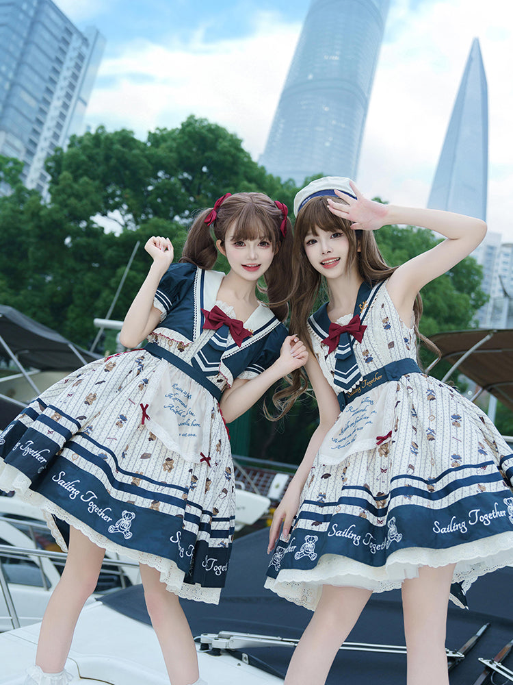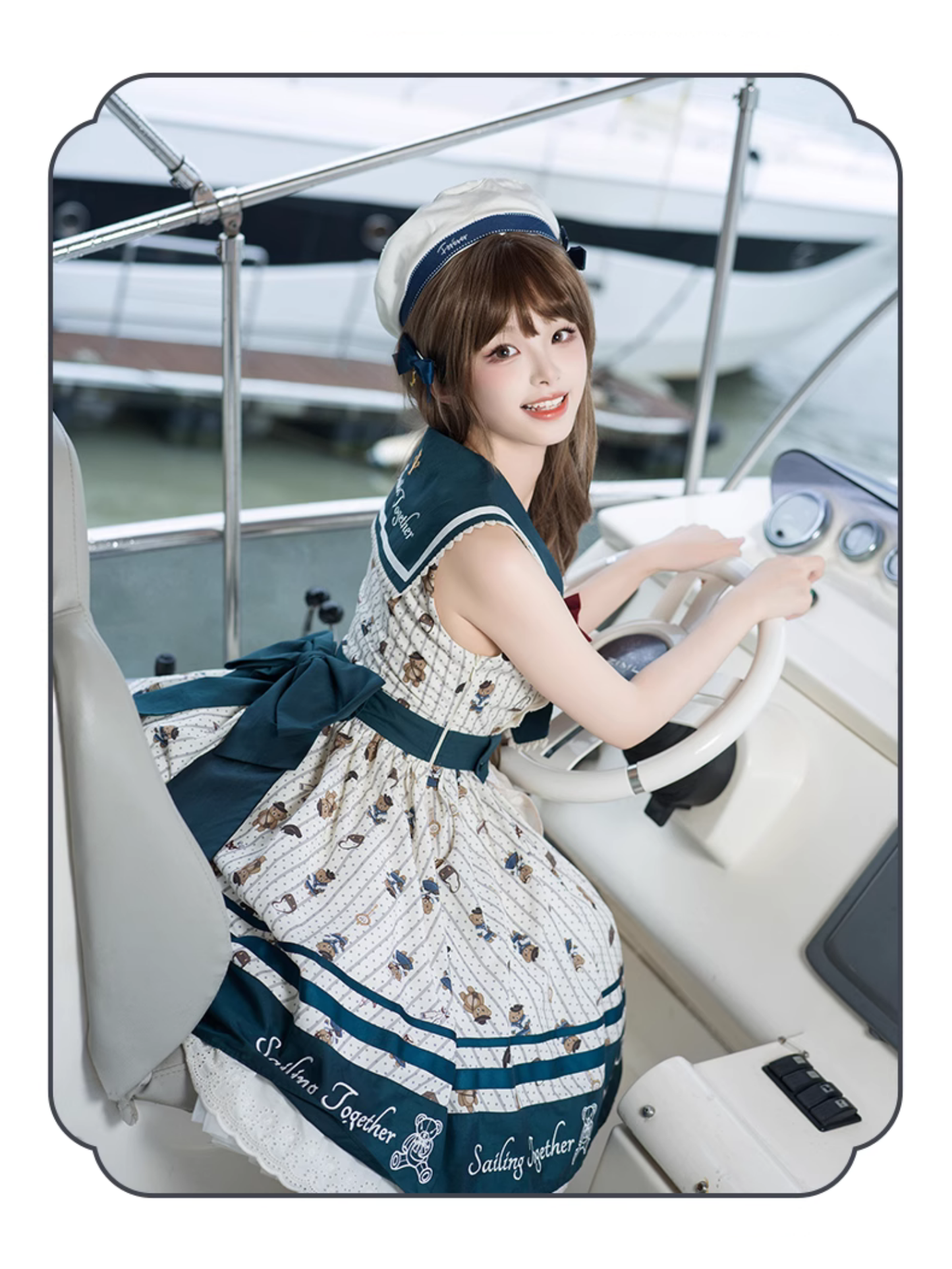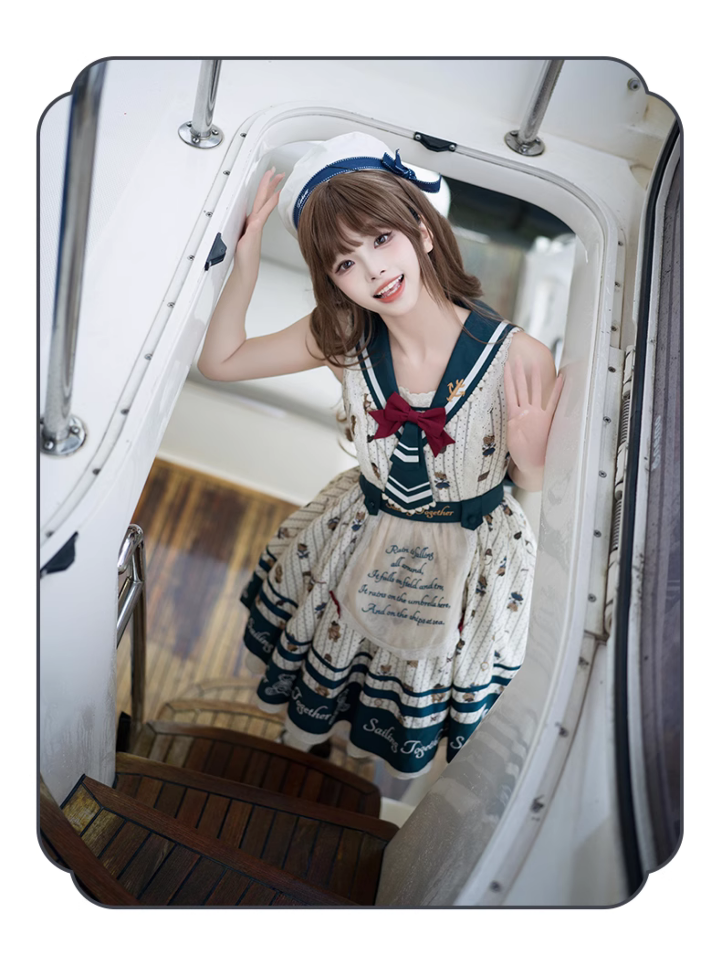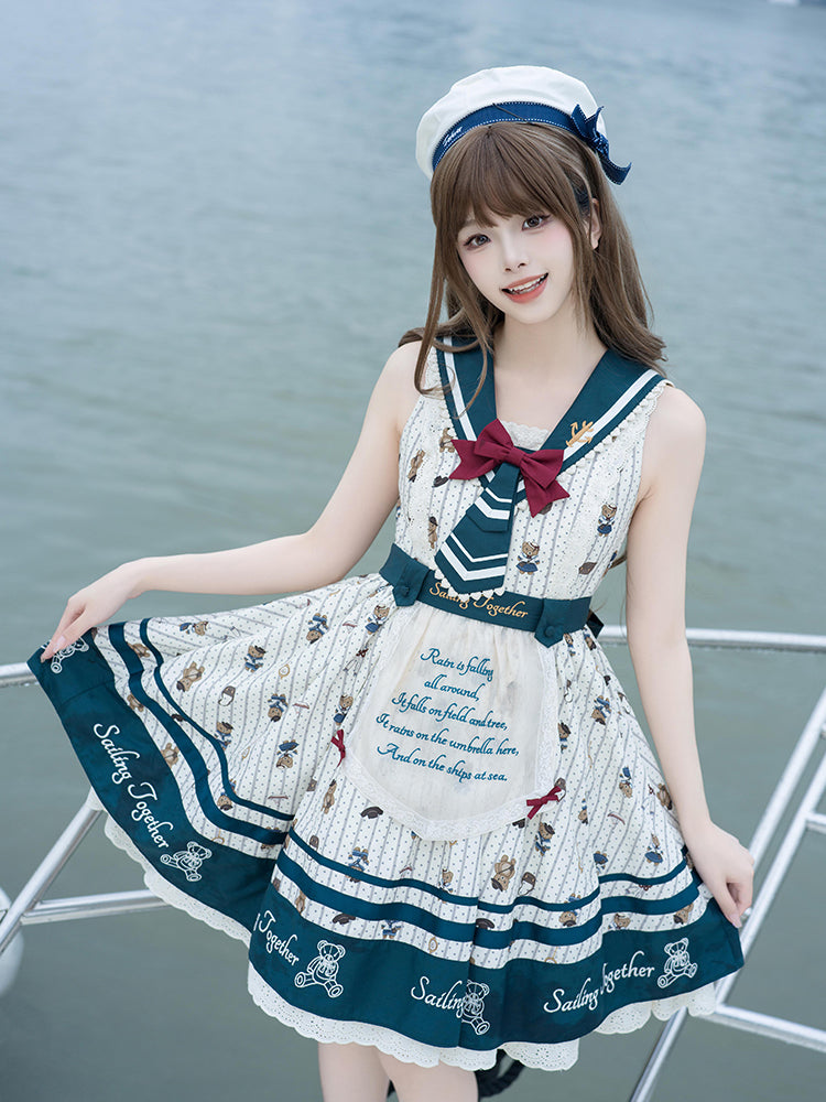 セーラー襟が可愛いマリンデザインのジャンパースカート。