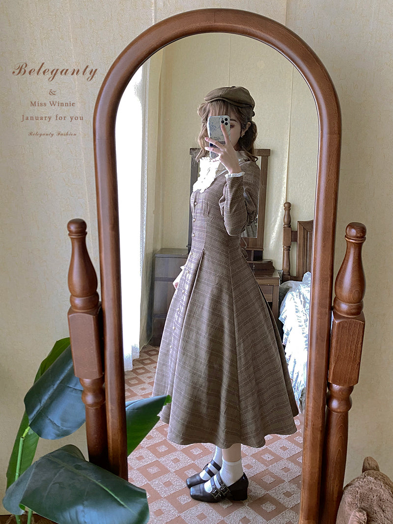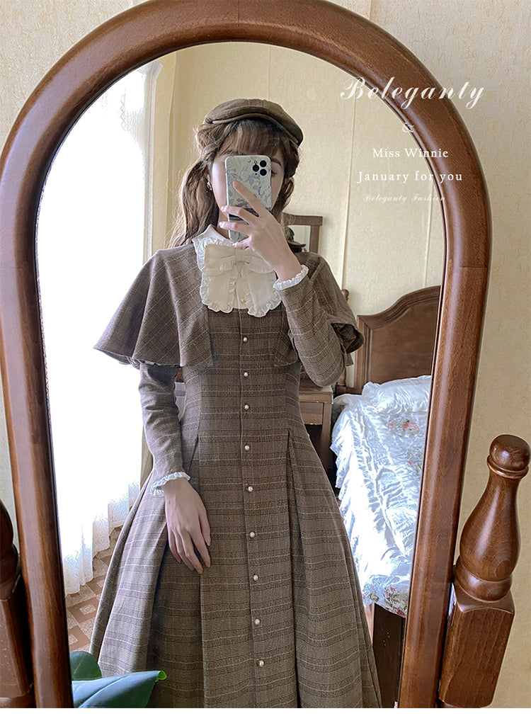 ジャボタイにジゴ袖、マントが付いたクラシカルなワンピース。マント、ジャボタイは取り外し可能。