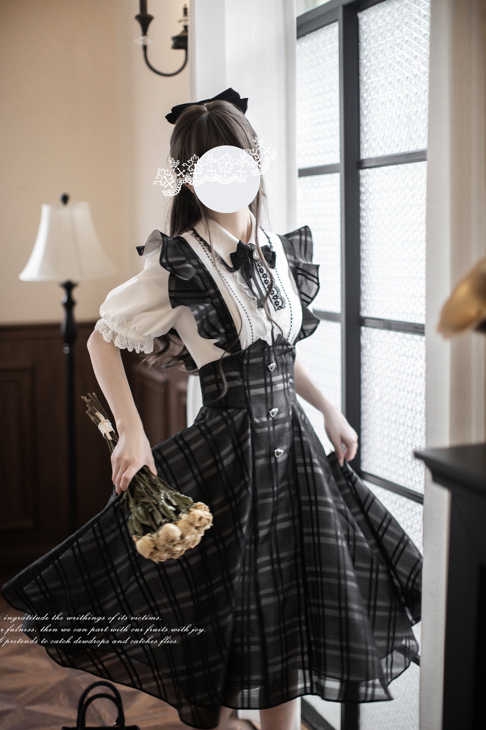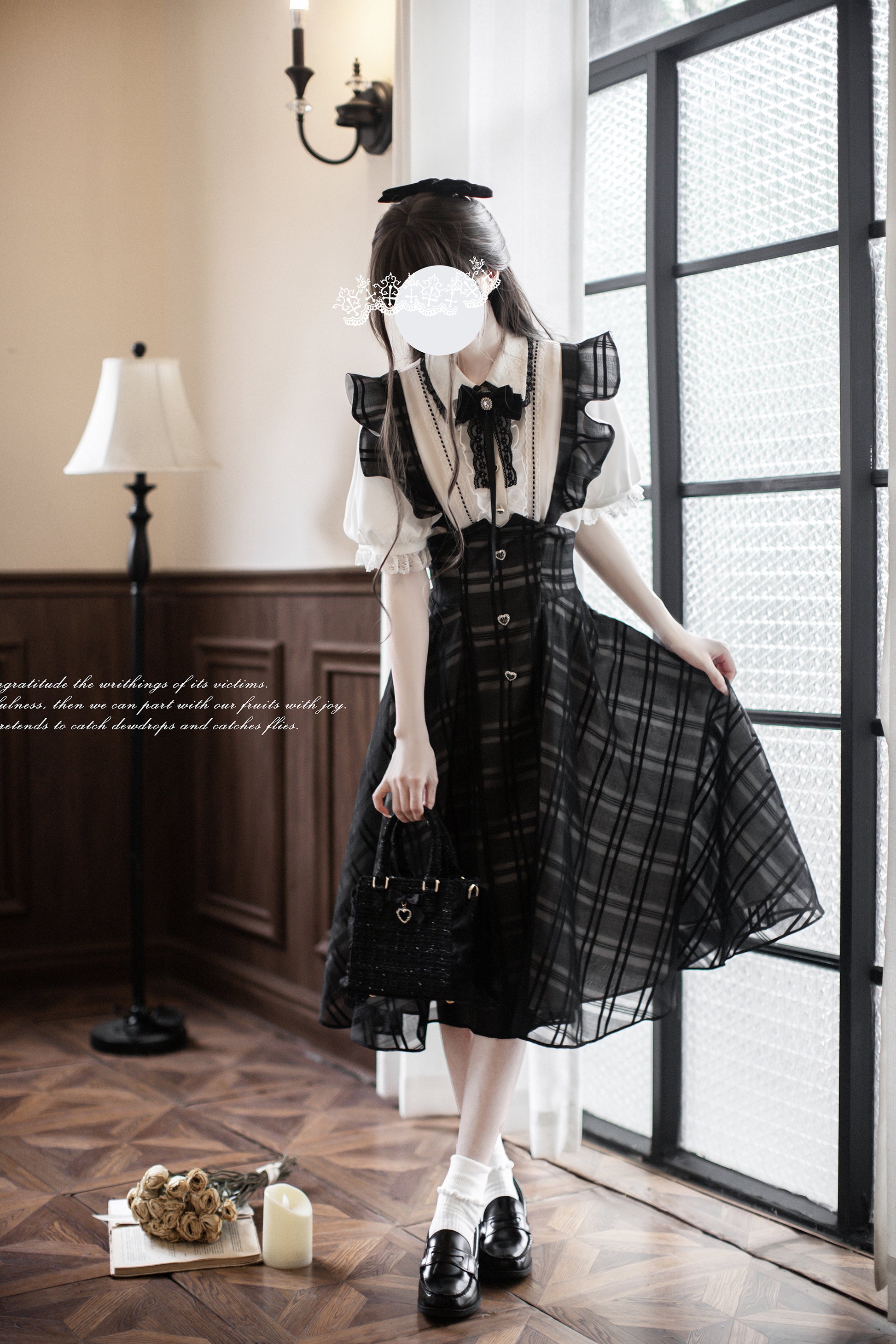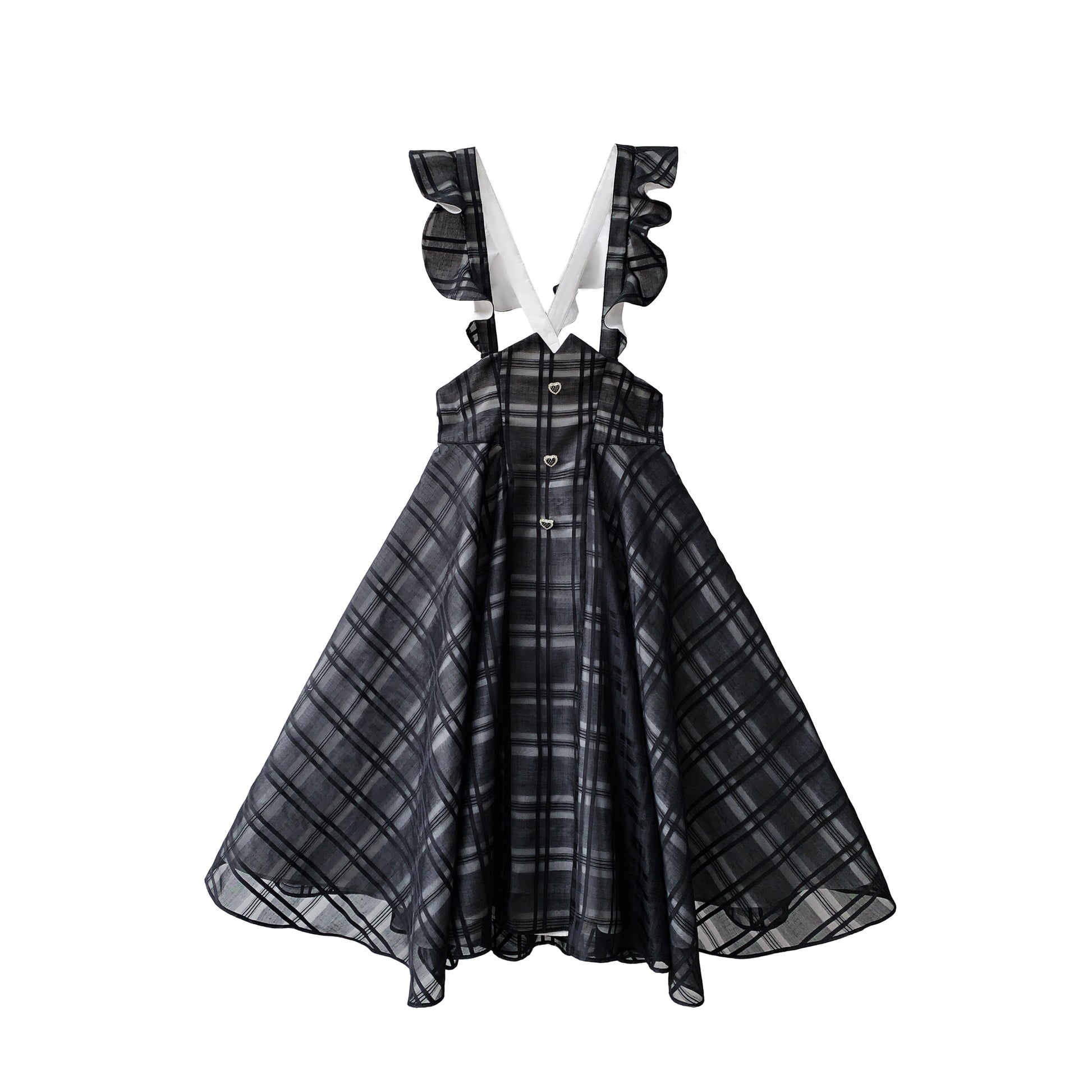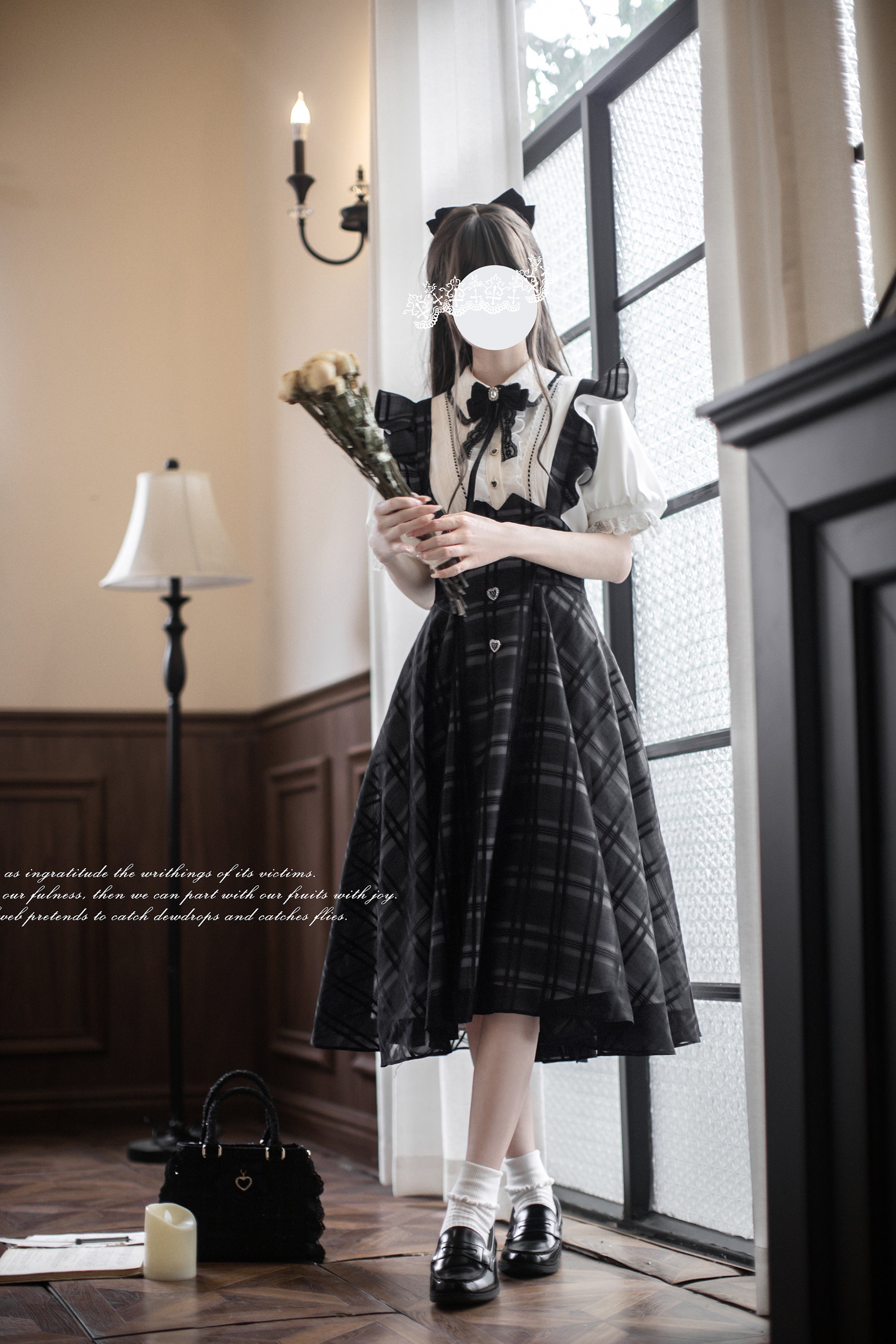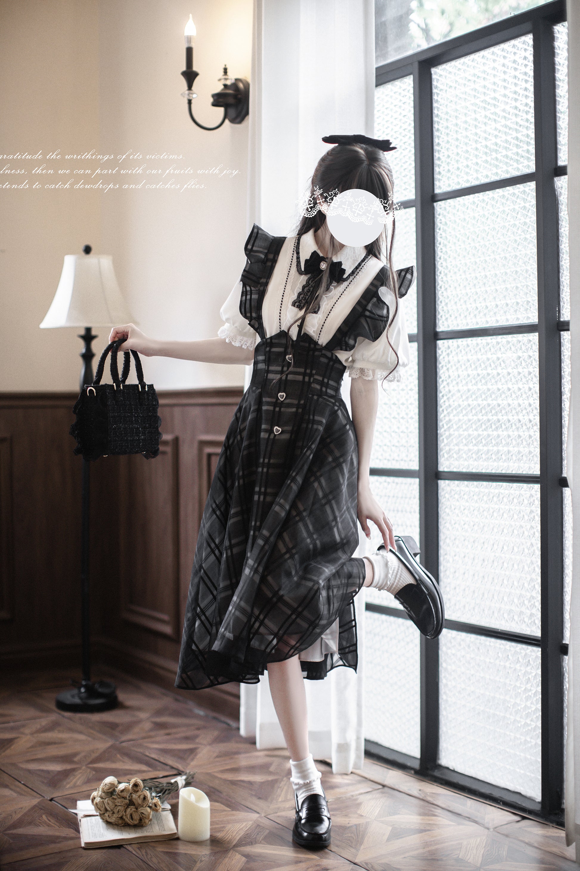 Monochrome Heart チェック柄ジャンパースカートセット・ロング丈