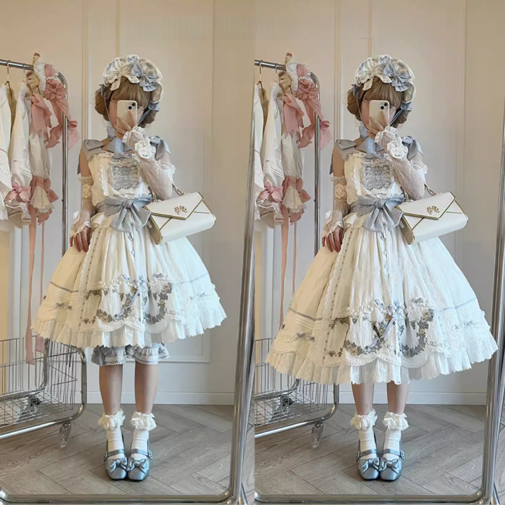 【限定特別価格】クラシカルリボンジャンパースカート・グレー +パニエ