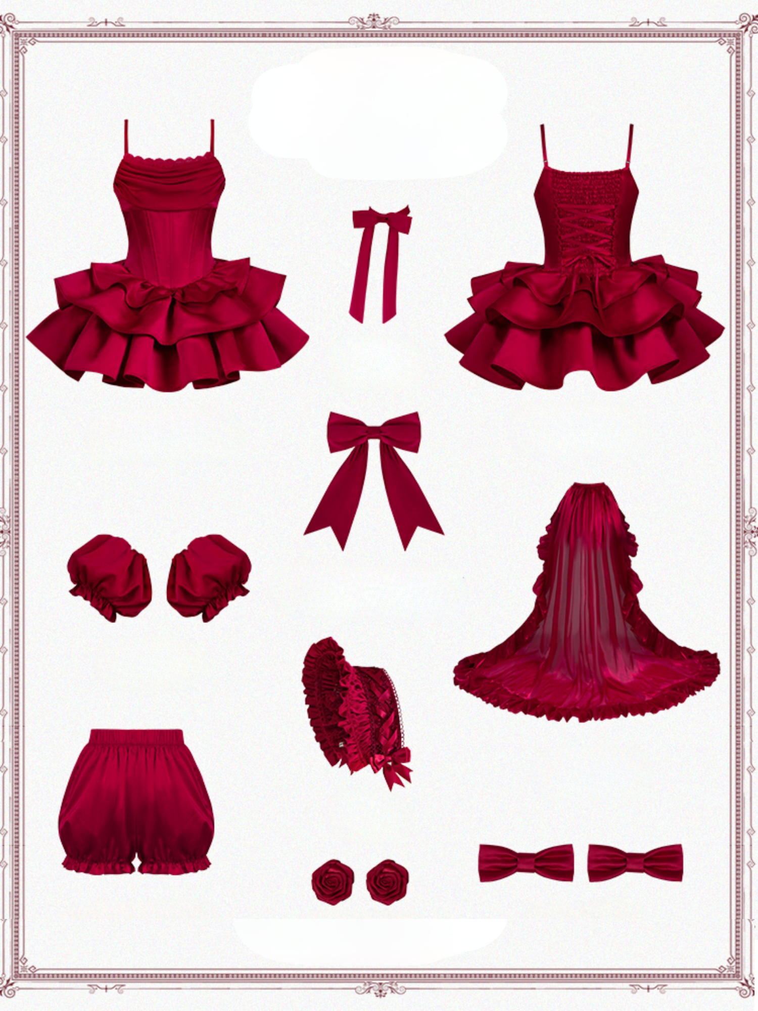 こちらのページはジャンパースカート、ロングテール、チョーカー、付け袖、ブローチ、ボンネット、バックリボンのみの販売となります。ドロワーズその他は付属しません。