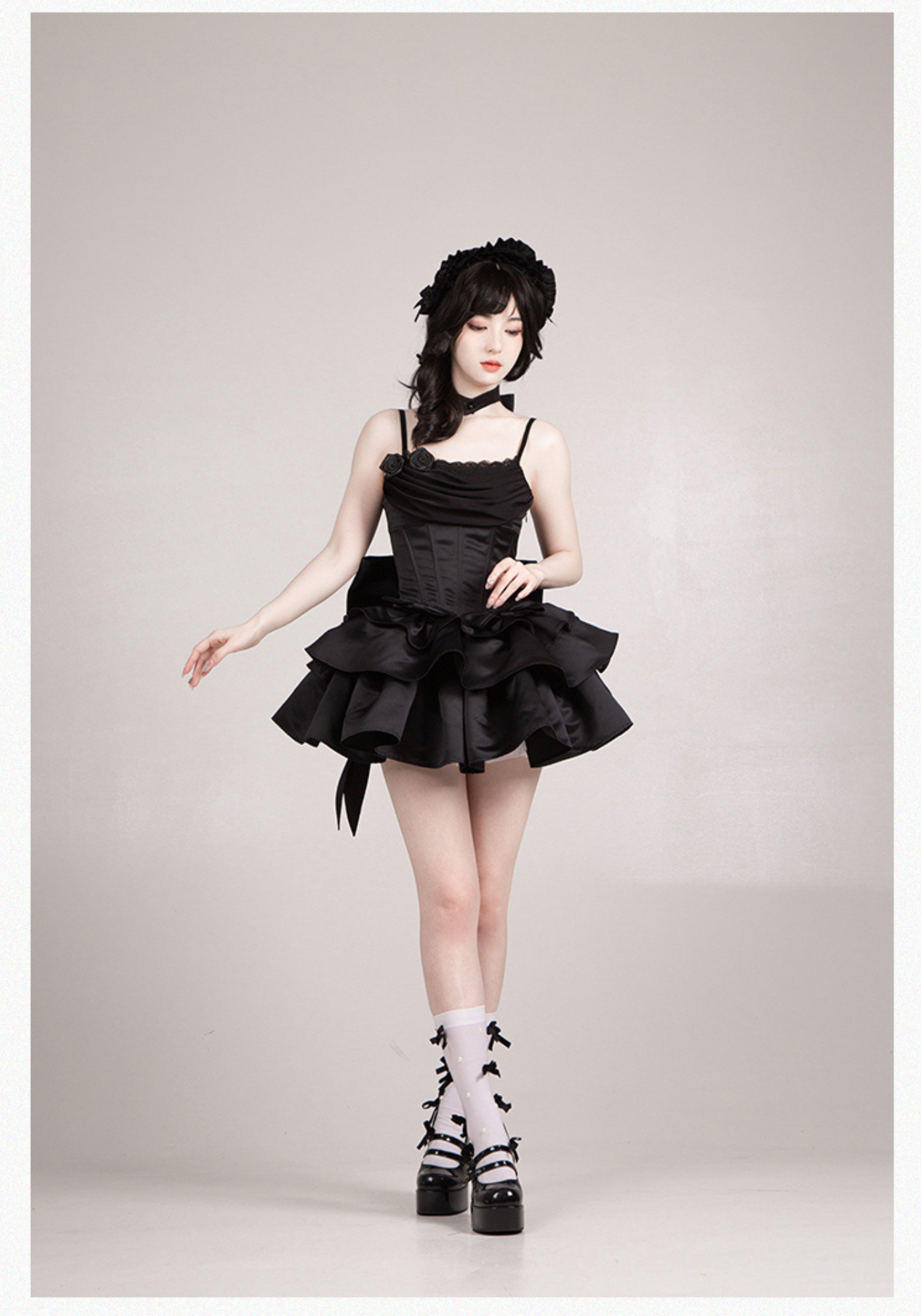 背面のリボンで上半身はスリムに見せながら、3段フリルでボリューミーなシルエットに✨