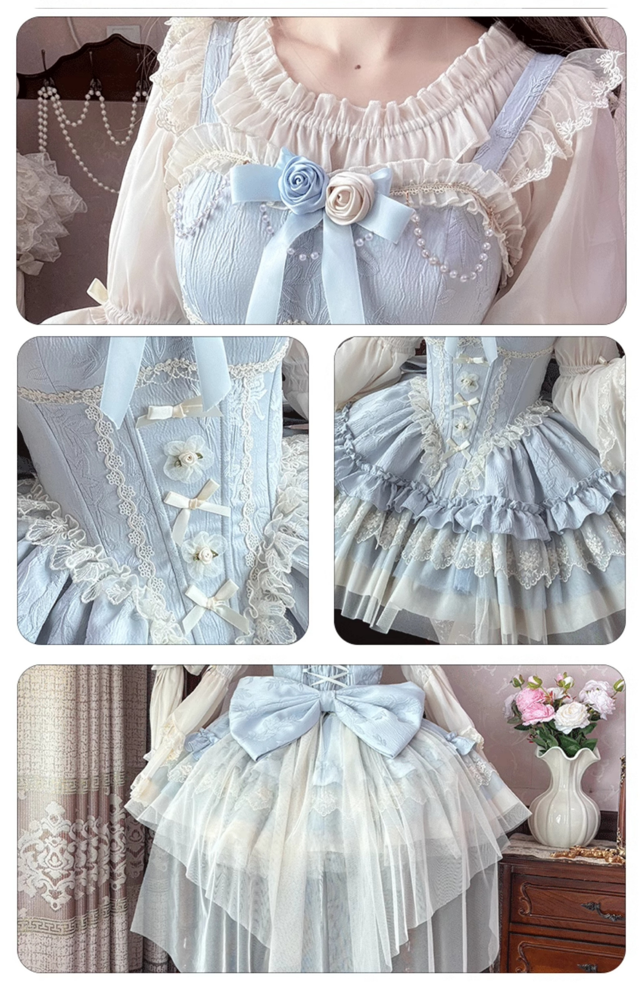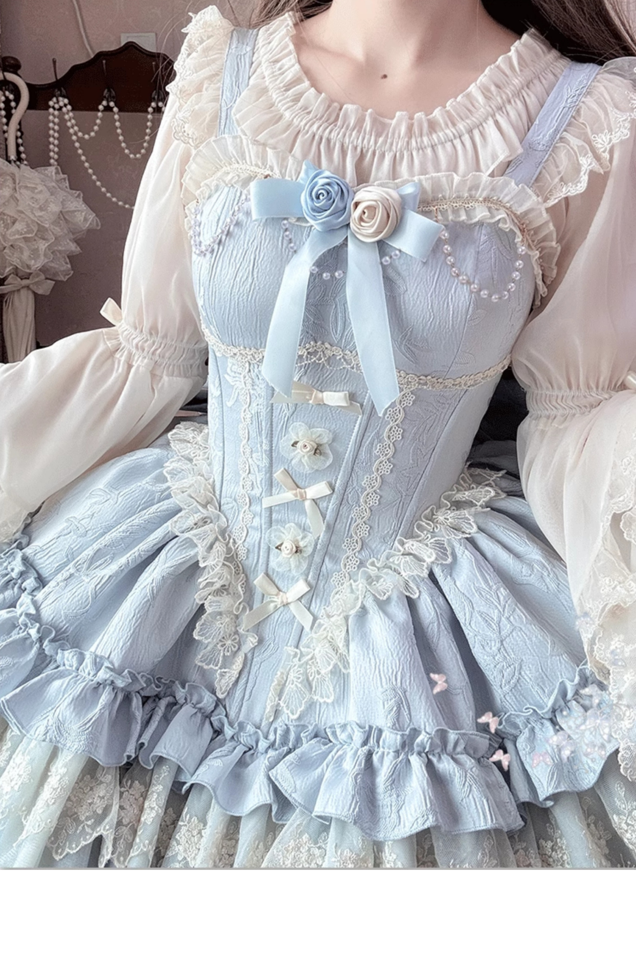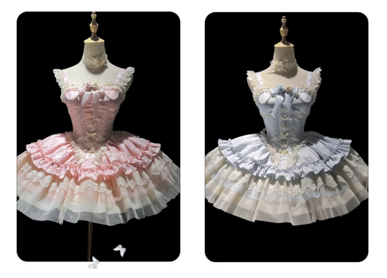 バラとリボンのバレエ風ジャンパースカート 全4色