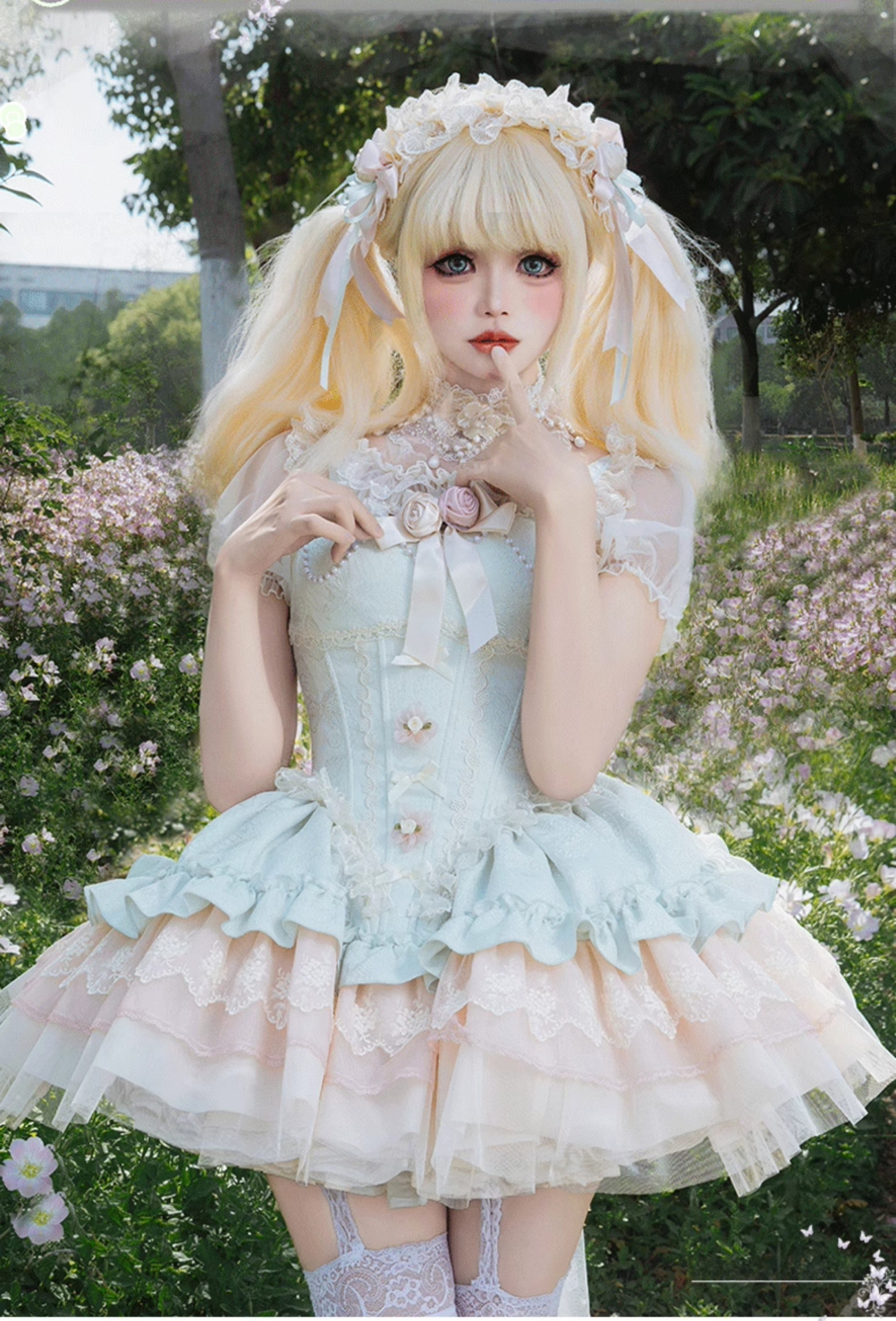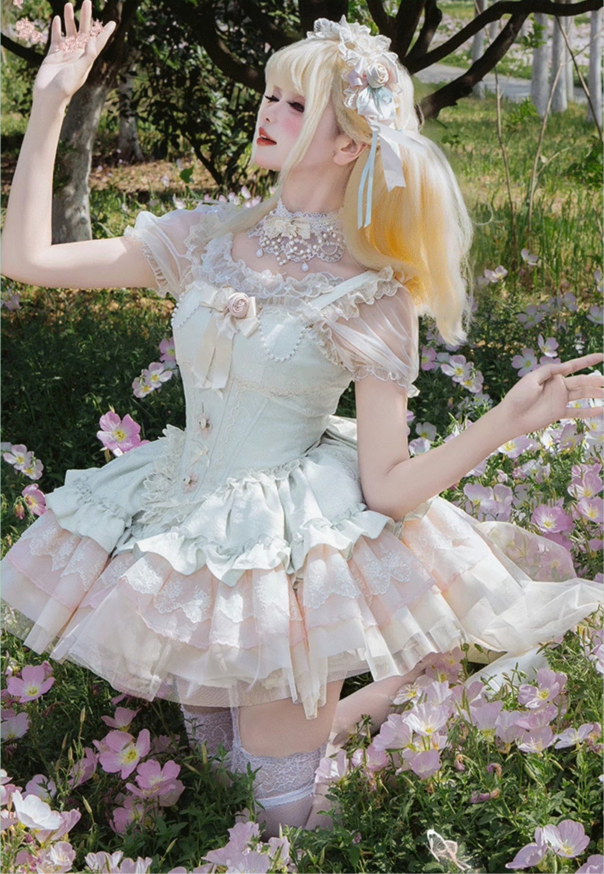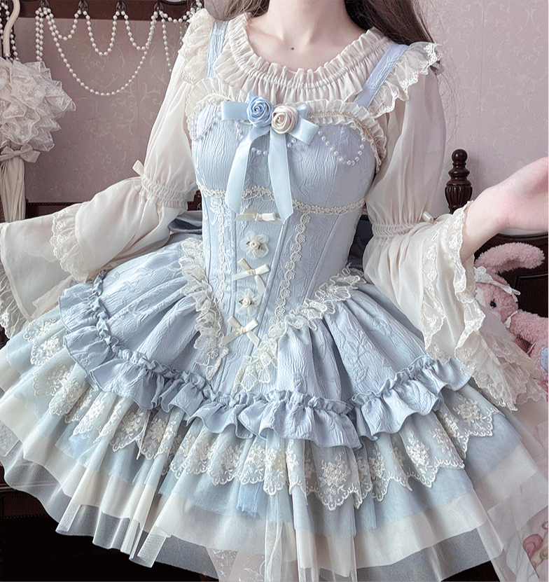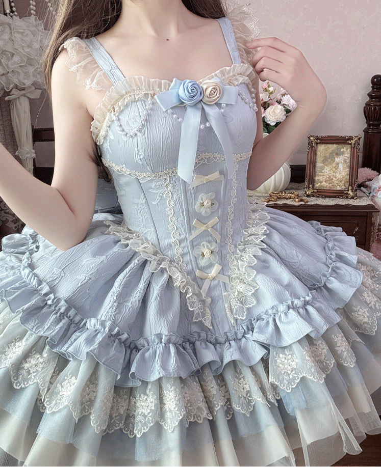 バラとリボンのバレエ風ジャンパースカート 全4色