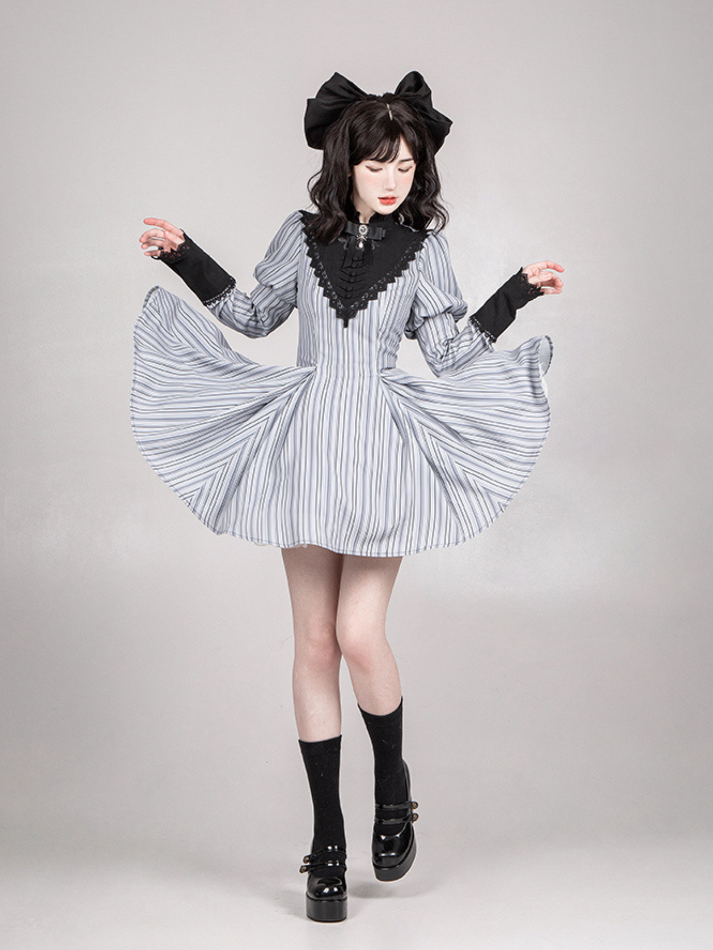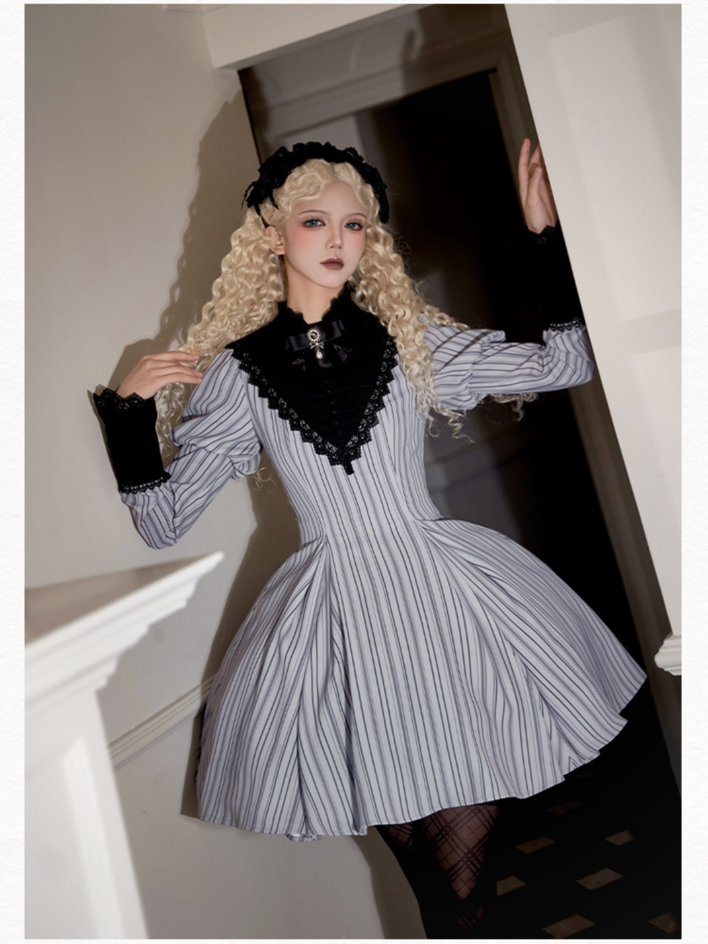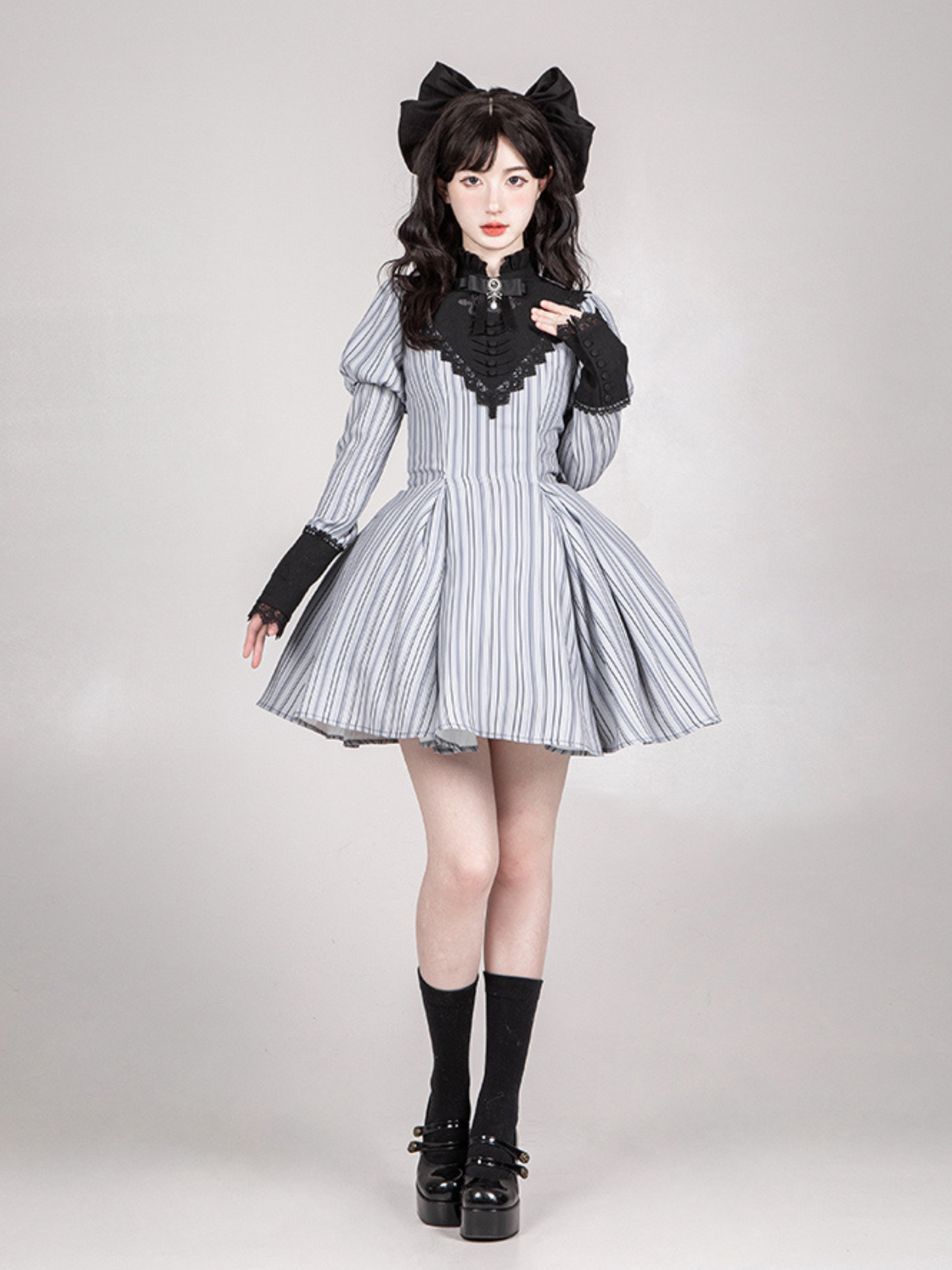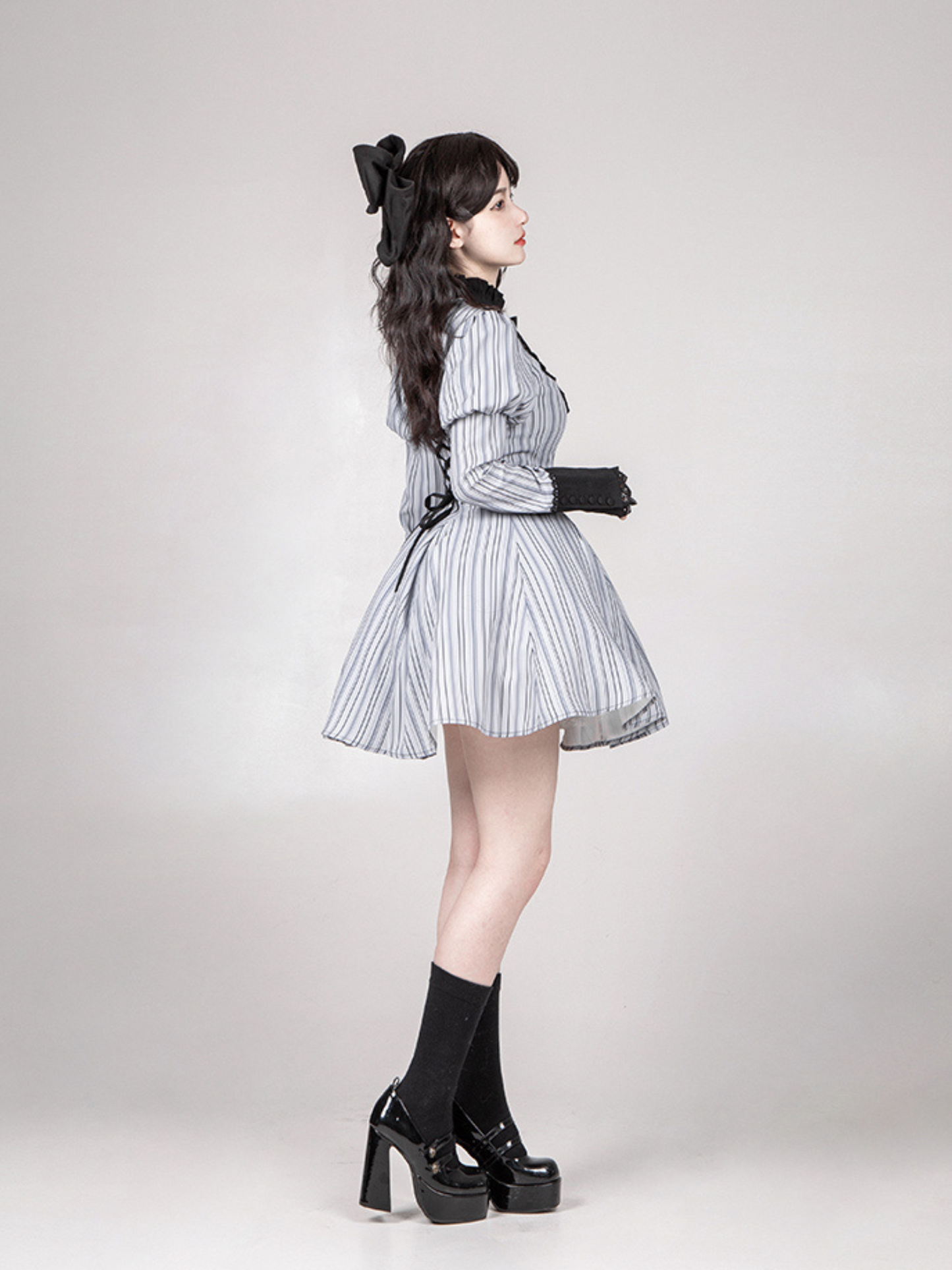 蛇と薔薇刺繍のストライプワンピースとエプロン ショート丈