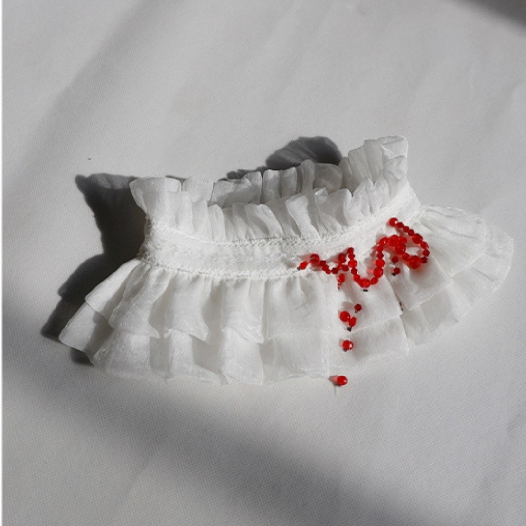 血液の滴る様子を赤いビーズで表現したゴシックなアクセサリー。