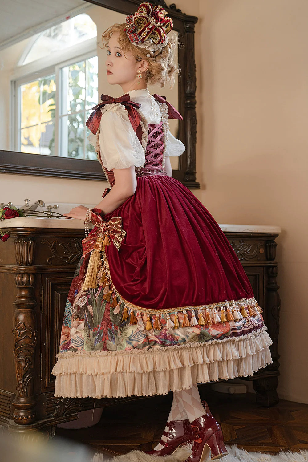 【限定特別価格】クラシカルリボンジャンパースカート・グレー +パニエ